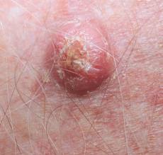 Χαρακτηρίζεται από αχρωματικό σκληρό ογκίδιο το οποίο συχνά παρουσιάζει πληγή.