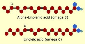 Πρόκειται για το λινελαϊκό οξύ (αναφέρεται και ως λινολεϊκό οξύ) που έχει δύο διπλούς δεσμούς και το άλφα-λινολενικό οξύ (αναφέρεται και ως α-λινολενικό οξύ) που έχει τρεις διπλούς δεσμούς.