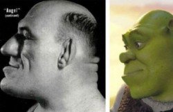 Ο Σρεκ, το καλοκάγαθο αλλά ευέξαπτο “τέρας” που πρωταγωνιστεί στις περιπέτειες της ομώνυμης ταινίας βασίζεται σε ένα υπαρκτό πρόσωπο που έπασχε από ακρομεγαλία (μεγαλακρία) τον Ρώσο παλαιστή Μορίς Τίλετ.