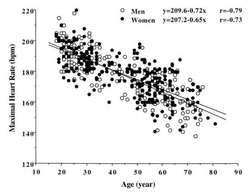 Υπάρχει ένα ανώτατο όριο καρδιακού ρυθμού, περίπου 220 σφυγμοί ανά λεπτό. Αυτό το όριο φθίνει με την ηλικία και υπάρχει ένας απλός αριθμητικός τύπος που κατά προσέγγιση το υπολογίζει: αφαιρείτε από το 220 την ηλικία σας.
