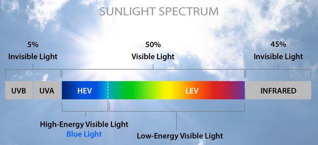 Οι ακτίνες του ήλιου, τα φωτόνια, είναι ένα είδος ηλεκτρομαγνητικής ακτινοβολία με διάφορα μήκη κύματος. Χωρίζουμε τις ηλιακές ακτίνες σε κατηγορίες: στις ορατές που μας κάνουν να βλέπουμε τα πράγματα γύρω μας και έχουν μήκη κύματος από 400 έως 700 νανόμετρα (nm: δισεκατομμυριοστά του μέτρου) και τις αόρατες στο ανθρώπινο μάτι. Τα χρώματα που βλέπουμε καθώς πηγαίνουμε από τα 400 στα 700 nm είναι ιώδες, μπλε, πράσινο, κίτρινο, πορτοκαλί και κόκκινο. Αυτή η ακτινοβολία αποτελεί το 50% της συνολικής ηλιακής ακτινοβολίας. Όταν τα μήκη της ηλιακής ακτινοβολίας βρίσκονται εκτός του ορατού εύρους, το ανθρώπινο μάτι δεν ανιχνεύει κάποιο χρώμα. Οι αόρατες ακτίνες είναι είτε υπέρυθρες με μήκη κύματος πάνω από 700 nm, αποτελώντας το 45% της ηλιακής ακτινοβολίας, είτε υπεριώδεις, κάτω από τα 400 nm, αποτελώντας το 5% της ηλιακής ακτινοβολίας. Το γεγονός ότι το 50% των ηλιακών ακτίνων είναι αόρατες δεν σημαίνει ότι δεν έχουν επίδραση πάνω μας. Οι υπέρυθρές μας προκαλούν ζέστη και μπορούν να κάνουν ζημιά στα μάτια μας, ωστόσο η έρευνα έχει επικεντρωθεί στην υπεριώδη ακτινοβολία, διότι αυτή είναι που προκαλεί κυρίως τις βλάβες στο δέρμα μας. Επίσης η έρευνα έχει τα τελευταία χρόνια επεκταθεί στο ιώδες και μπλε φως που έχουν μήκη κύματος κοντά στην υπεριώδη ακτινοβολία και ενδέχεται να κάνουν κάποια ζημιά. Τίποτα δεν αποκλείει και το υπόλοιπο φως να έχει κάποια αρνητική επίδραση, αν και αυτή μάλλον είναι ελάχιστη.