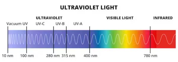 - Η UVC έχει μήκος κύματος από 100 έως 290 nm. Απορροφάται πλήρως από το στρώμα του όζοντος και έτσι δεν ασχολούμαστε ιδιαίτερα.
