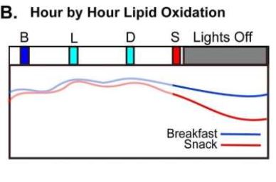 Όμως η οξείδωση των λιπών ήταν διαφορετική μεταξύ των συνεδριών. Κατά μέσο όρο, 15 περισσότερα γραμμάρια λίπους κάηκαν κατά τη διάρκεια του 24ωρου κύκλου όταν τα άτομα έτρωγαν πρωινό σε σύγκριση με το όταν έτρωγαν το «σνακ». Το «σνακ» αργά το βράδυ καθυστέρησε την ικανότητα του σώματος να στοχεύει τα αποθέματα λίπους για ενέργεια και αντ’ αυτού έκανε το σώμα να στοχεύσει τους προσβάσιμους υδατάνθρακες που εισήχθησαν στο σώμα.