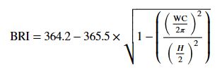 BRI = 364.2 – 365.5 × √(1 – [περίμετρος μέσης (cm) / 2π]² / [0.5 × ύψος (cm)]²)